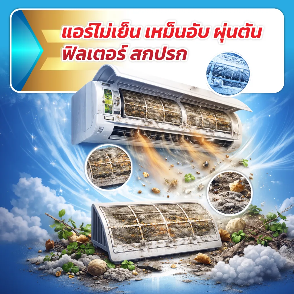 🌬️ ฝุ่นเกาะ ฟิลเตอร์ตัน แอร์ไม่เย็น เหม็นอับ?